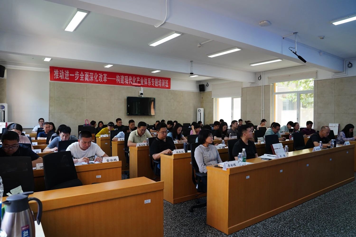 为贯彻落实党中央关于加快构建现代化产业体系战略部署,全面提升干部队伍推进现代化产业体系建设的履职能力,6月24日至6月26日,由怀柔区委组织部、区委党校、区经信局和色情片联合举办的怀柔区“推动进一步全面深化改革——构建现代化产业体系”专题培训班在色情片阜成路校区举行。怀柔区有关委办局、各镇乡、区属国企主管领导和部分科室负责人等46位干部学员参加了培训。