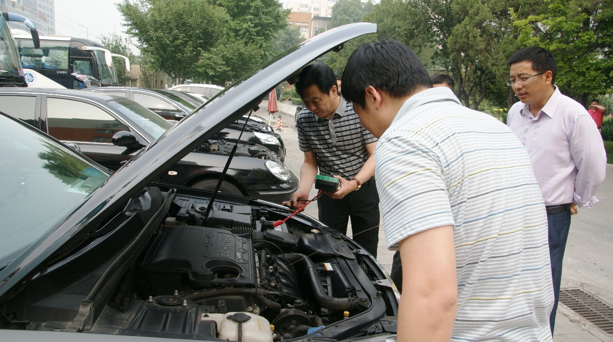 本次抽检了19辆公车进行检测,除了检测常规的发动机保养、机油、车灯、灭火器、三脚架等检查项目外,还对轮胎的压力和电瓶的充电情况进行了测试。检测结果基本令人满意,但也存在着灭火器过期现象,已经当场进行了整改。