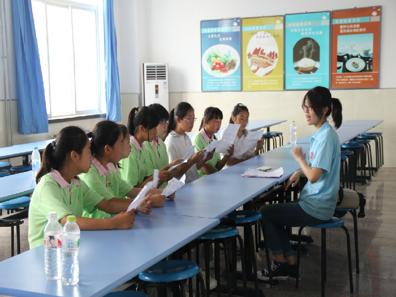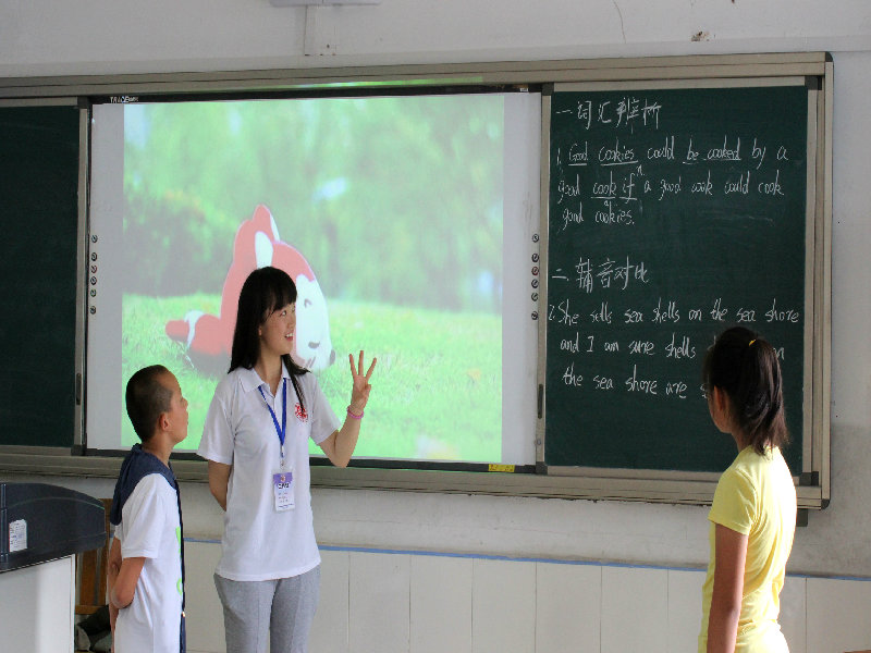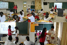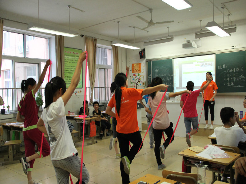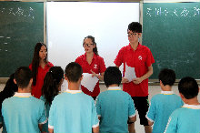 大家都早早地起床,早饭后就迅速来到了教学楼。在楼道中能听到各班孩子们朗朗的读书声。通过自我介绍,志愿者们和同学们建立起了信任。体育课上,志愿者组织同学们做游戏,别开生面;礼仪课上,老师为大家讲述了一些礼仪方面的知识,并进行了文明礼仪知识竞赛,同学们都积极参与,收获颇丰;电影课上,志愿者通过播放电影为同学们讲解电影的基本知识,形式生动有趣,赢得了同学们的欢迎。