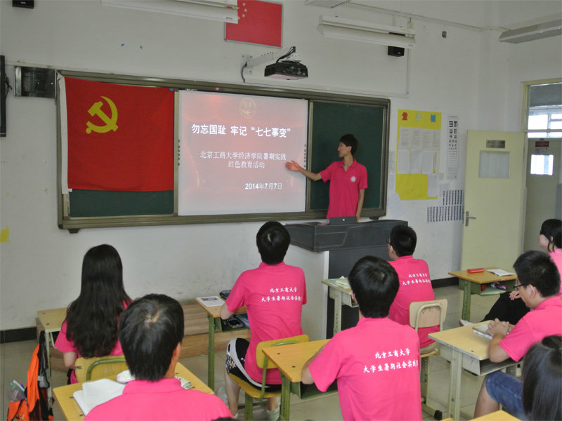 7月7日,为纪念“七七事变77周年”践行社会主义核心价值观,商学院暑期社会实践分团围绕“勿忘国耻,振兴中华”开展了一系列支教与拓展活动。