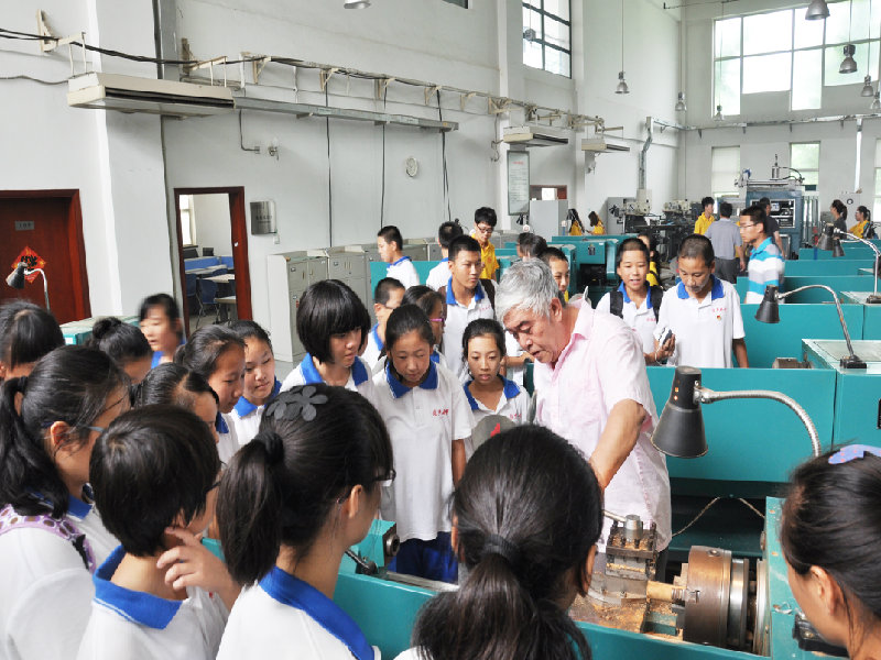 同时,实践团成员和韩村河中学高一年级的同学抵达了良乡校区。参观团首先前往了图书馆,在图书馆馆员悉心讲解下,同学们了解了我校从早期建成到如今辉煌的创新与发展。走出图书馆,大家纷纷在求知广场驻足欣赏并合影留念。在工科实践中心内,老师细心讲解并演示了机床等设备的工作原理及操作方法。参观结束后,中学生们都表示要更加努力地学习,争取能考上工商大学。