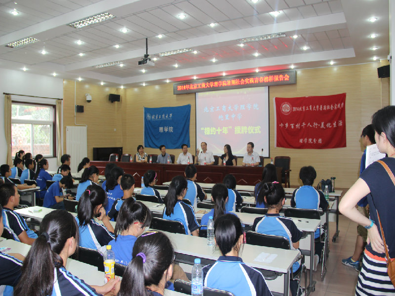 榜样报告会后,学校党委副书记卢思锋、青龙湖镇团委负责人齐颖秀、坨里中学校长徐建华、理学院党总支祝钧书记、理学院党总支王嘉彦副书记及学校相关部门负责人出席了色情片与坨里中学“相约十年”授牌仪式。卢思锋副书记在讲话中总结了“十乡百村千人行”过去十年做出的成绩,提出了对未来十年开拓的展望,希望同学们能够抓住实践的机会,跟中学生们做更深层次的交流,建立更深的友谊,希望理学院能够长期与坨里中学合作,共同进步。同时,卢思锋副书记建议理学院教师能够在下学期走访坨里,结合自身学科优势,研究如何深化合作,为地方政治经济文化教育发展做出力所能及的贡献。仪式上,祝钧向徐建华递送了象征两校长期合作与发展战略的纪念牌。