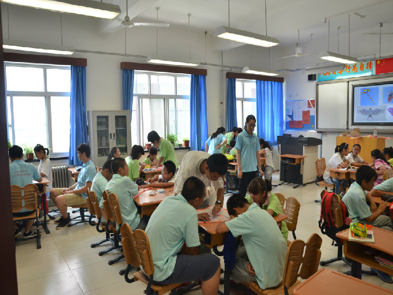 7月8日上午,支教小组早早地就将教学所需要的东西都整理归类,为一天的课程讲解打好前战。有了昨天一天的磨合再加上班级QQ群的建立,同学们和实践分团的队员们交流更加通畅,配合更加默契,感情更加深厚。上课时同学们认真听讲,积极回答问题,坨里中学初一年级四个班的课程安排有条不紊进行。