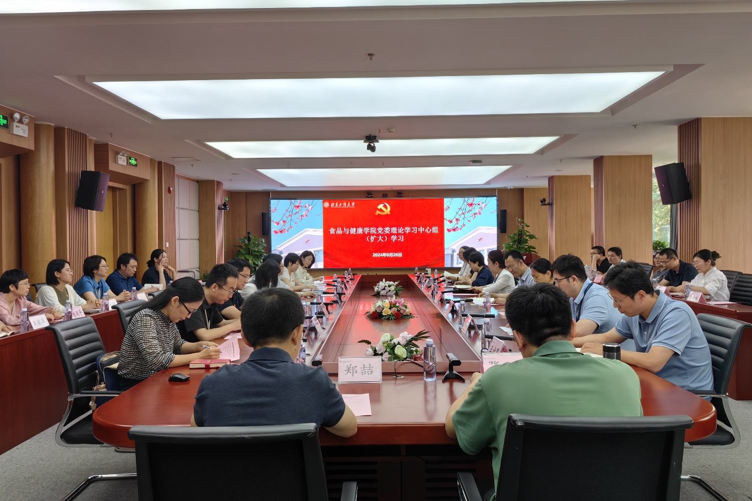 食品与健康学院持续推进党纪学习教育,6月26日,组织党委理论学习中心组(扩大)学习,学院领导班子成员、党委委员以及食品科学与工程系教师党支部参加学习研讨。学校党委常委、副校长徐丹丹到会指导。学习研讨由学院党委书记郑喜姣主持。
