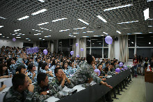 由于下雨的缘故,操场上的训练项目只能暂停,在这段时间内,学院召集全体新生进行了入学教育宣讲会,老师们针对新生入学有关事物,如学校网站的使用、奖学金如何获得、银行卡的使用及挂失处理等问题做了详细的讲解,同学们都认真听讲并做了笔记。