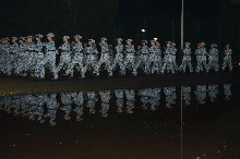 军理课后,雨还未停,同学们便集结在操场看台展开了下午的军歌练习,如内务般整齐有序的行事风格同样被带到了训练场上。“团结就是力量”“军号嘹亮,步伐整齐”——在教官的鼓舞下,军歌一声比一声斗志昂扬,一遍比一遍充满士气。响彻校园的,不仅是军歌,更是每一位参加军训的同学对军营生活的深入了解和充分适应,饱含着的是新生对大学生活中军训这一必修课的端正态度和一丝不苟。
