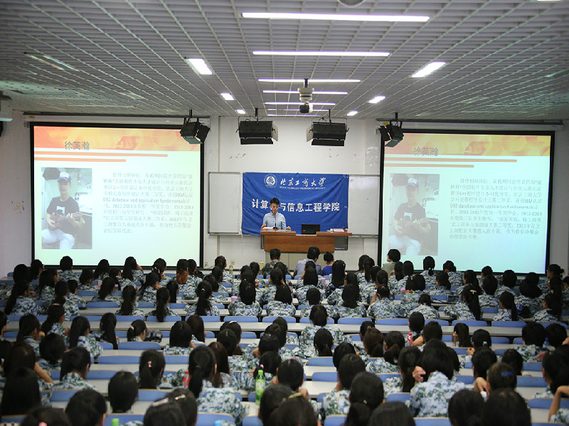 退伍学生胡子坤和刘艳青讲述了两年的部队生活让他们受益终身,也积极鼓励在座的新生积极入伍;软件111班周玉琢以自己成功的创业经历为大家阐释了“创业并不是一件遥远的事”;软件12班班长徐英瀚和大家探讨了学习的重要性;信管121班班长马文林讲述了在从事学生工作道路上所学到的能力。新生代表计算类145班夏梓诺发言,畅谈了对以后大学生活的期望与目标,将榜样精神发挥到自己的理想中,践行到生活的点点滴滴。
