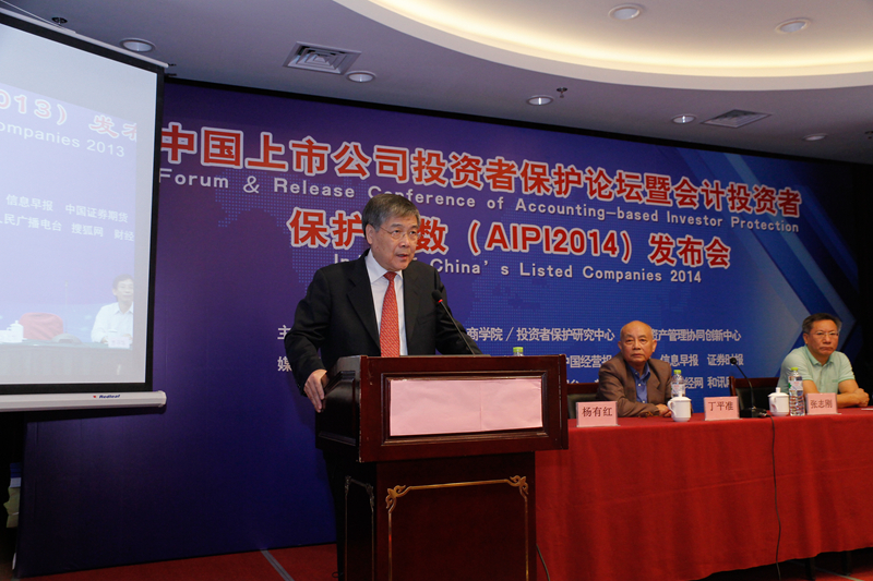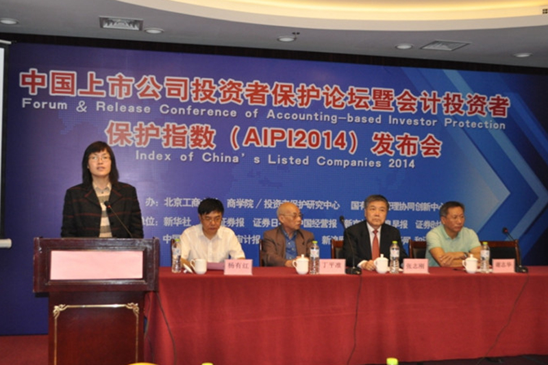 继过去连续四年发布上市公司投资者保护指数后,9月26日,我校召开中国上市公司投资者保护论坛暨会计投资者保护指数(AIPI2014)发布会,第五次发布该指数。商务部原副部长、中国商业联合会会长张志刚,中国注册会计师协会原秘书长丁平准,我校副校长谢志华出席发布会并作主题演讲。《证券日报》等在京媒体、《审计研究》等专业期刊、上市公司及投资机构代表,在京高校和科研机构代表以及商学院部分教师和学生100余人参加发布会。发布会由科技处处长杨有红主持,商学院党总支书记欧阳爱平到会致辞。