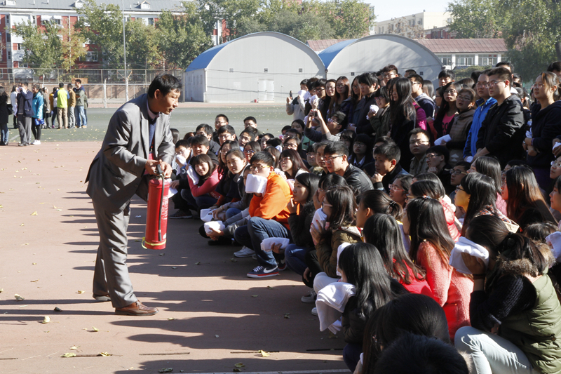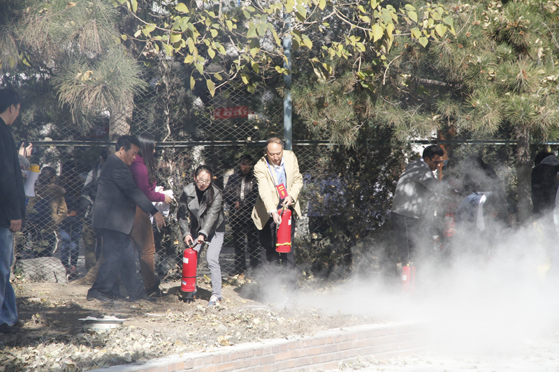 警笛拉响后,学生有序撤出在模拟火场,分别在阜成路校区东区操场和良乡校区生活区操场集合,并清点人数,现场形象逼真,忙碌而不慌乱。保卫处副处长杨东杰对参演的师生进行了灭火器使用培训,参演学生和员工认真学习并进行了灭火器灭火体验。参演师生纷纷表示,通过演练了解了火灾逃生知识,学习了灭火器材使用方法,很有收获。