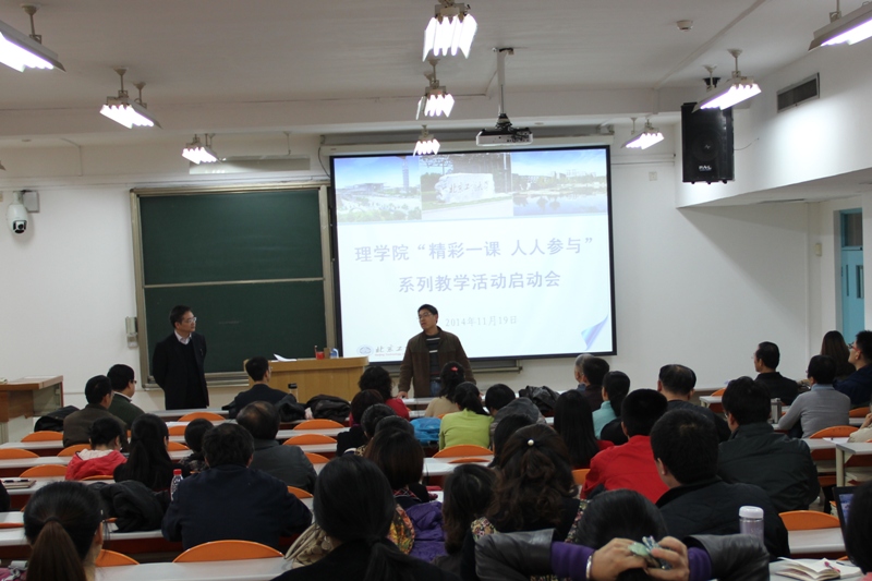 11月19日,理学院“精彩一课,人人参与”系列教学活动启动会暨名师教学观摩会在阜成路校区召开,活动旨在落实学校关于提高人才培养质量、深化本科教学工作的指示。教务处魏中龙处长、研究生部张正平副主任出席会议。本次大会由理学院曹显兵院长主持,理学院全体教职工参加会议。
