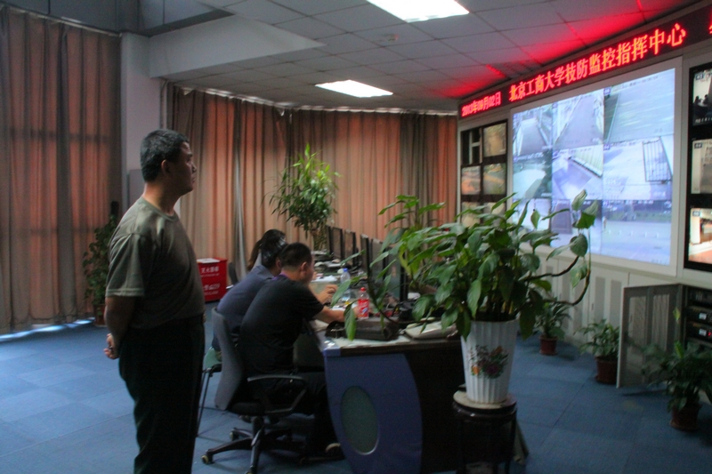 如今,学校在两个校区共有技防中心2个,分控室28个,室内报警器21个,校园安全宣传教育大屏幕2块,手动报警器10个,安装摄像头1686个,其中阜成路校区693个,良乡校区993个,重要区域、敏感部位基本实现了全方位覆盖。保卫处有专人24小时监控录像,每天都会检查特定区域电子设备的状态,确保完好率。