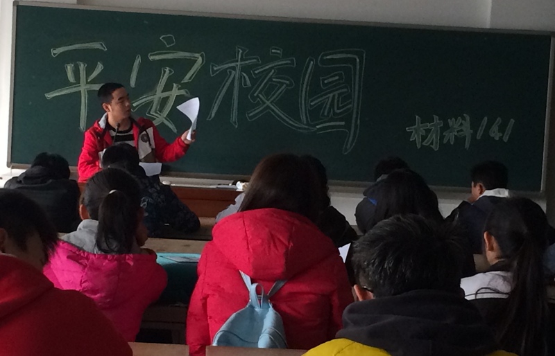 法学院法学134班在班会前收集并分类整理了大量安全知识常识,系统为学生进行讲解。商学院物流131班组织本班学生认真学习《“平安校园”创建宣传手册》,并为学生播放在火灾中如何逃生的教学视频。材料与机械工程学院机械114班通过提前准备的消防、交通安全方面的案例带领全班同学共同分析安全隐患的成因、教训以及预防方法。理学院生物132班以“我心中的平安校园是怎样的”和“怎样建设我们的平安校园”为主题,让每名班级成员结合自身的学习生活自由讨论交流,并最终达成如何从小事做起、从自我做起的共识。艺术与传媒学院数媒142班以“安全是生命之源、健康之本、和谐只需”为主题,从亲情角度出发,畅谈如如何保护好自身安全,让学生意识到这既是对自己、对家人负责,更是让远方的亲人们放心。外国语学院英语111班以“倡导健康心理,营造平安校园”为主题,分析大四学生所面临的考研、实习、出国等多方面带来的心理压力,提出缓解心理压力的建议,同时,让学生更多关注自身心理健康,避免因心理问题而导致的校园悲剧。经济学院财经143班采用情境模拟的方式,让学生通过角色扮演加深对安全防范知识的理解,如“在漆黑的路上被陌生人跟踪该怎么办”、“你发现隔壁寝室无人时起火该怎么办”等。食品学院环境121班着重针对如何注意化工楼实验室的安全问题进行讨论,交流了如何保管和使用酒精灯、实验手套等实验用品。计算机与信息工程学院信管131班男生特意制定了“保护女生回学校”的值日活动,保证女生在稍晚的时候从地铁站回学校的安全。
