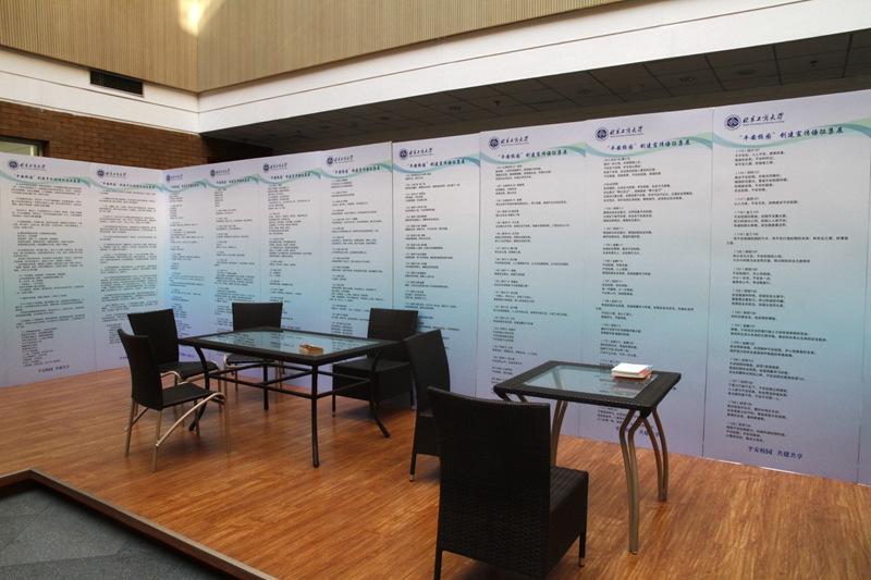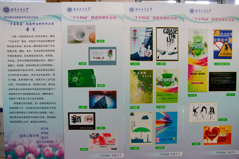 近日,451件“平安校园”创建师生创作作品分别在阜成路校区图书馆和良乡校区展出。