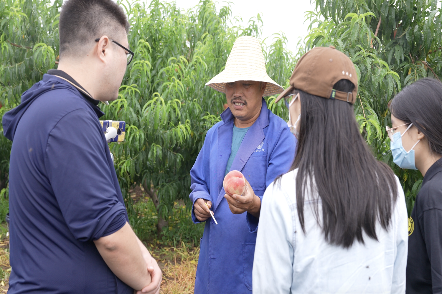 为了更好地了解乐亭地区的特色种植产业,实践团冒雨来到杨家捻村开展实地调研工作。作为远近闻名的鲜桃之乡,乐亭栽培桃树历史悠久,种植面积广泛。杨家捻村作为当地桃树种植的佼佼者,近年来一直大力发展反季节鲜桃种植产业。在走访中,实践团成员发现该村村民通过种植、售卖反季节桃子,获得了丰厚的受益,更利用出桃前的半年空档期,外出打工赚取额外收入。每家每户前栽种的山楂树既是优质的经济作物,也是村民对未来红火日子的美好期待。