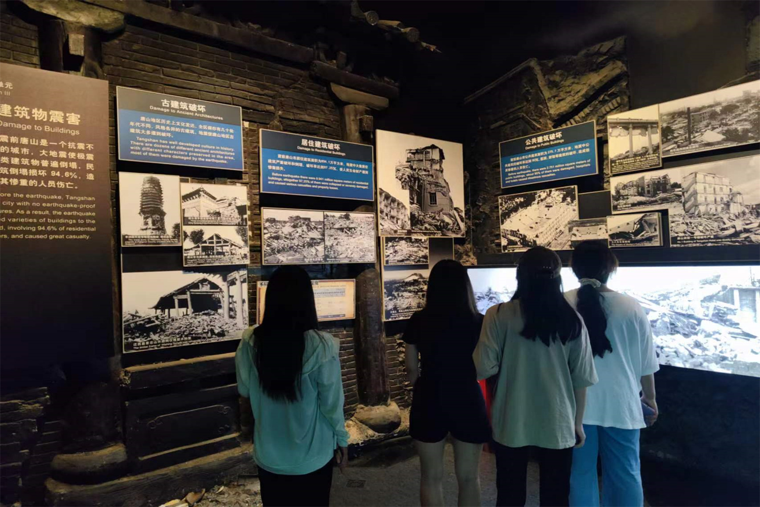 在此次社会实践结束前,实践团一行来到唐山地震遗址纪念公园。由5组13面墙体组成的唐山大地震罹难者纪念墙、唐山机车车辆厂铸钢车间遗址以及一张张灾后照片,向实践团成员讲述着唐山曾经的伤痛,也诉说着唐山人民在党中央坚强领导和全国广大军民支持帮助下,从零开始,抗震救灾、重建家园的壮丽诗篇。多难兴邦,面对惨烈的自然灾害,伟大的中国人民用劳动愈合伤疤,用双手重建家园,铸就了公而忘私、患难与共、百折不挠、勇往直前的唐山抗震精神。