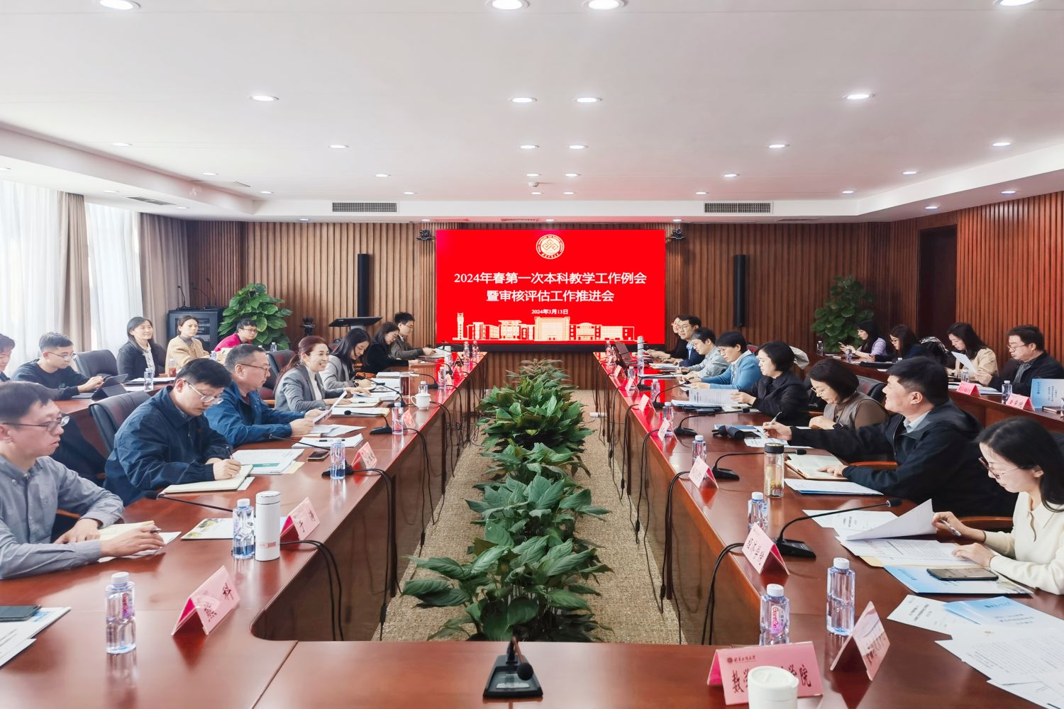 会议分三阶段进行,第一阶段为学校教育教学审核评估工作推进会,第二阶段为本科教学例会,第三阶段为学院专业建设汇报。