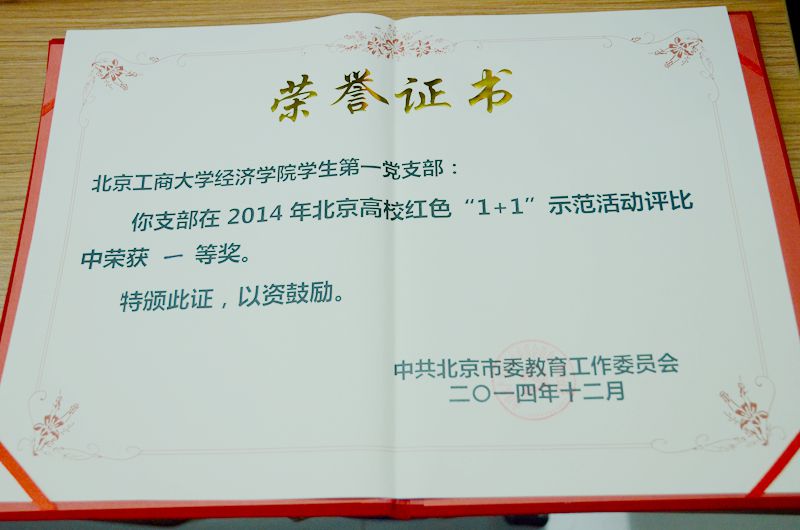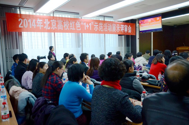 评审包括视频展示和现场问答两个环节,参评各高校按照抽签顺序逐一展示各自5分钟的共建成果视频,并接受现场评委的提问。在视频展示环节,我校经济学院学生第一党支部通过一段制作精美的视频生动再现了一年来与房山区周口店镇黄山店村党支部开展的卓有成效的共建活动。自今年4月以来,双方党支部以“走基层,践行核心价值观;砺党性,争做时代先锋”为主题,以推动黄山店村经济转型为目标,以“阳光起航教育”、“科普宣讲”、“健康生活”、“旅游志愿”为切入点,互帮互助,共同发展。共建活动历时8个月,累计参与人数253人次,学生往返600多公里。活动过程中,学生党员充分发挥专业优势,通过开展实地调研并提供有效调研分析报告、网站制作与更新、拍摄宣传片与海报设计、志愿服务等形式,帮助黄山店“幽岚山红叶节”旅游收益提高10.8%,节省人力费用万余元,极大促进了黄山店地方经济的发展。同时,学生党员通过深入农村经济的实践平台,获得了解农村、服务农村的锻炼成长机会,以实干精神浇灌青春梦想,积极践行社会主义核心价值观,并把红色“1+1”活动的影响从学生党员、入党积极分子延伸到周围的团员和普通学生。在现场问答环节,贸经111班路莹同学沉着冷静,回答问题思路清晰、语言风趣,赢得了评委和现场观众的热烈掌声。