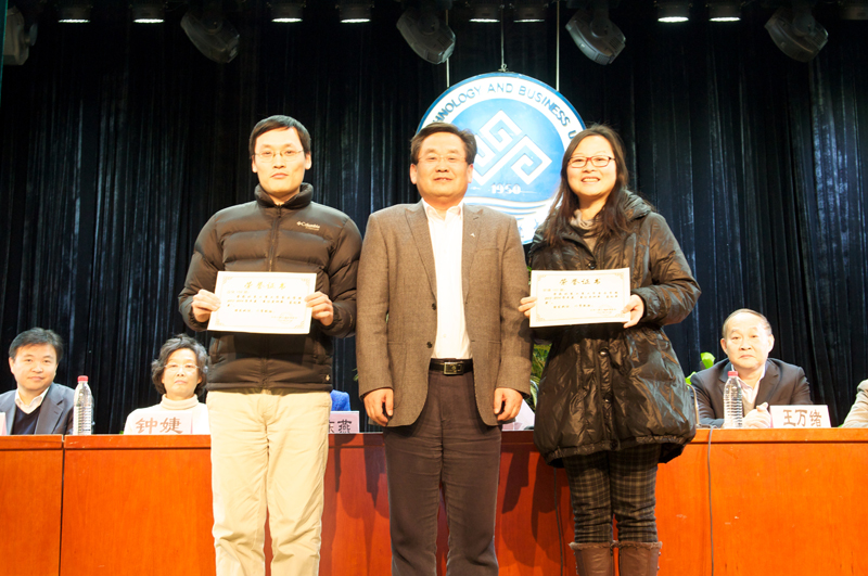 食品学院副院长姚志良宣读了表彰决定。校、院领导为获得校先进班集体等6个校级奖项和学院“专业标兵”等15个院级奖项的获奖代表颁奖。学院为鼓励学生努力学习、开拓创新,在全院学生中树立榜样,营造良好学风,在此次表彰的奖项中新设立了学院“专业标兵”和四六级考试优秀奖,以此奖励上一学年各专业绩点第一名和四六级英语考试前五名的优秀学生。此外,学院还表彰了2014届最佳考研率、最佳签约率班级,以及学院就业工作贡献奖教师,旨在提升全院教师对就业工作的认识,凝心聚力共同推进学院就业和人才培养。