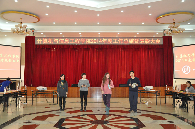 1月19日,计算机与信息工程学院2014年总结表彰会、联谊会在阜成路校区举行。校党委书记谭向勇、副校长方德英出席活动。校办公室主任王小艺、教务处处长魏中龙、工会常务副主席田宏、学院领导班子全体成员和全体教职工参加活动。表彰会由学院党总支副书记张凯伟主持。