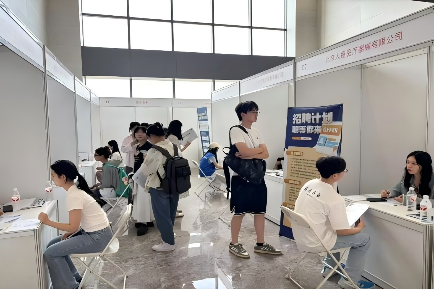 此次双选会是校领导带队赴生物医药基地访企拓岗成果的有效延伸,是校地合作模式的新探索,也是大兴生物医药基地2025年走进高校的首场招聘会。学校邀请园区管委会及同仁堂制药、锦波生物医药、本草方源药业集团等11家园区企业进走校园,共提供了123个岗位需求,吸引200余名本、硕毕业生参会求职,为相关专业学子带来了丰富的求职信息和广阔的职业机会。招聘会上毕业生们积极互动,向心仪企业递上精心准备的简历,表达自己对岗位的强烈兴趣,现场气氛愈发热烈。企业负责人也与求职者们充分交流,深入了解他们的专业背景、实习经历和职业规划,并与部分学生达成初步意向。