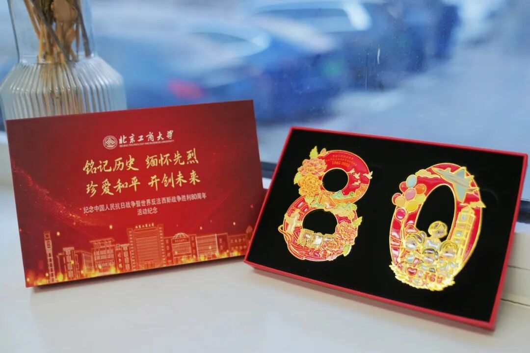 此次颁发的纪念徽章由我校设计与艺术学院参与活动的赵絮和孟凡雨凝两位同学原创设计,镌刻着300余名师生参与重大活动的“独属记忆”。
