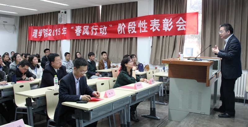 理学院紧紧围绕学校本科教学综合改革,多举措扎实推进“春风行动”学风建设活动,成效初显:实施“助学零距离”学业帮扶计划,82.5%的学生绩点取得不同程度的提高,其中进步最大的由0.78上升到2.15;第一届化学专业毕业生中,升学出国率已经达到31.75%。学院还建立了“联合学业加油站”、“空中答疑室”等,进一步创新形式、加强学风建设的工作规划。