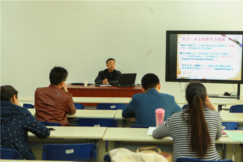 为进一步弘扬中国传统文化,4月16日,中国传统文化知识系列讲座在阜成路校区开讲,首场讲座《解读中国传统文化》由艺术与传媒学院副院长、文学博士林刚副教授主讲。学校纪委书记邱晓平出席讲座。党委宣传部部长张春萍、副部长刘晶、图书馆副馆长张长恒、部分新闻通讯员、宣传员以及研究生、本科生等聆听了讲座。