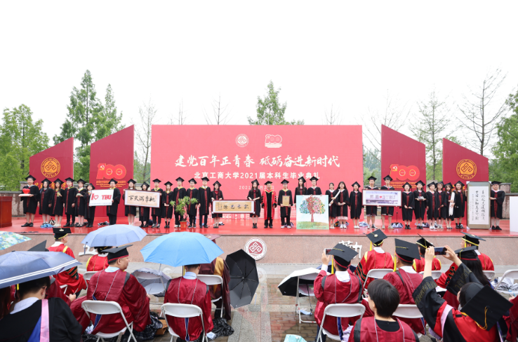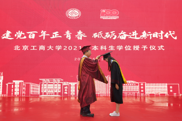 孙宝国指出,2021届毕业生是不平凡的一届,经历了新冠疫情和学业的双重考验,积累了难得的人生阅历,更加坚韧,更有担当,他以北工商校训勉励即将奔赴远大前程的毕业生们:以求真为先,秉承放眼世界的开放胸怀。要拥有梦想并为之付出实实在在的努力。以立德为本,坚守报效祖国的赤子情怀。切实投身到建设国家的宏伟事业中,把自己的成长融入到国家发展、社会进步的洪流中,让爱国主义在心中扎根,在行动上体现。以勤奋为重,筑牢开拓进取的根基。平庸与卓越之间的差别,不在于天赋,而在于长期的坚持、持续的投入。要有持之以恒的坚持,持续不断的努力,才能把握机会,实现目标。以创新为要,抓住勇立潮头的先机。在科学技术和经济社会发展加速渗透融合的今天,要思考走出大学校园后应当承担的责任和使命,为打赢关键核心技术攻坚战贡献力量。