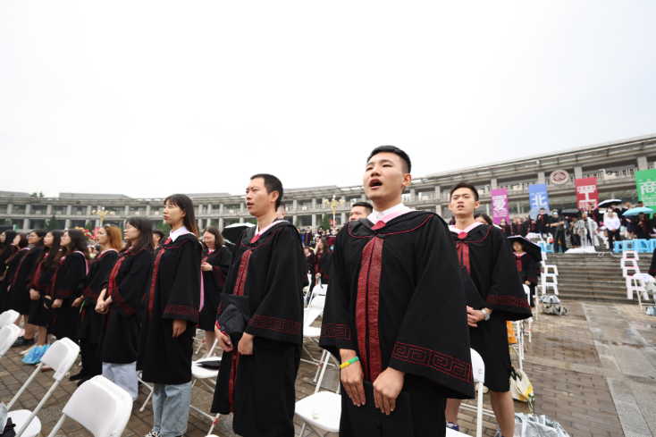 全体毕业生集体庄严宣誓:铭记工商校训,感念母校师恩;赓续红色基因,奉献祖国人民;勇担时代使命,无憾盛世青春;自强自信自尊,创业创造创新。扬帆远航,耀我工商!鸿鹄万里,国之栋梁!为国家繁荣昌盛,为民族伟大复兴,贡献毕生力量。
