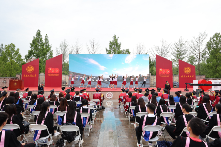 在开场演出《北工商版星辰大海》后,师生一同观看了开场视频。视频中毕业生们深情讲述,定格四年中最美好、最难忘的青春记忆,送上学校、学院领导老师的临别祝福。“北工商,我爱你!”视频的最后,毕业生们大声说出对母校的祝福,相约未来,在更高的顶点相见!