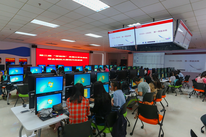 此前,4月30日,国资处联合校内外专家对文科实践中心“金融实验室升级改造项目”进行功能部分验收。经过校内外专家评议,一致认为项目整体设计及实施效果较好,安装调试顺利,达到合同约定目标,同意通过验收。项目的竣工验收标志着我校虚拟仿真金融实验室正式建成,这也是文科实践中心继对全部服务器和部分计算机进行虚拟管理之后,再次形成的体现国家级虚拟仿真实验教学中心特色的又一新的阶段性成果。虚拟仿真金融实验室以满足证券投资分析、证券交易实践、期货交易实践、外汇投资分析等金融实验教学为主,同时为统计学、管理学、经济学等其他专业提供良好的实验教学环境。100多位参赛同学置身刚完成验收的、现代化的、智能化的虚拟仿真实验室里,顺畅地完成比赛的全过程,是对该实验室所有设施设备能否正常运行的一次彻底的检验。此次比赛中,优美的比赛环境,团队合作式的场地、智能互动的系统使参赛同学兴奋不已,为能作为虚拟仿真实验室的首批享用者而骄傲。