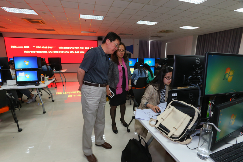 5月6日,学校第二届“学创杯”大学生创业综合模拟大赛校内选拔赛在良乡校区文科实践中心新落成的虚拟仿真金融实验室举行。李朝鲜副校长亲临赛场观看比赛,并对新落成的虚拟仿真实验室给予充分肯定。