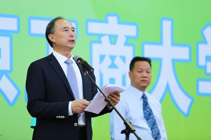 党委副书记卢思锋致开幕词,他代表学校党政领导向全体与会人员表示热烈的欢迎和衷心的感谢。他指出,学校坚持贯彻党的教育方针,高度重视党的教育工作,努力促进全体学生德智体美全面发展,体育工作和体育文化建设持续发展。他提到,学校传承奥运遗产,将运动会打造成学校重要的节庆之一:在体育项目中增加了非田径项目,吸引更多学生参与;同时,精心准备开幕式,将体育与艺术、心理等元素融为一体,传播正能量。在学校师生的共同努力下,开幕式文体表演已成为师生携手展现才艺、展示风貌、魅力无限、催人奋进、培育和实践社会主义核心价值观的大课堂、大舞台。他希望全体运动员发扬体育精神,公平竞争、奋勇拼搏、力求佳绩,希望全校各部门共同努力确保校运动会圆满成功。