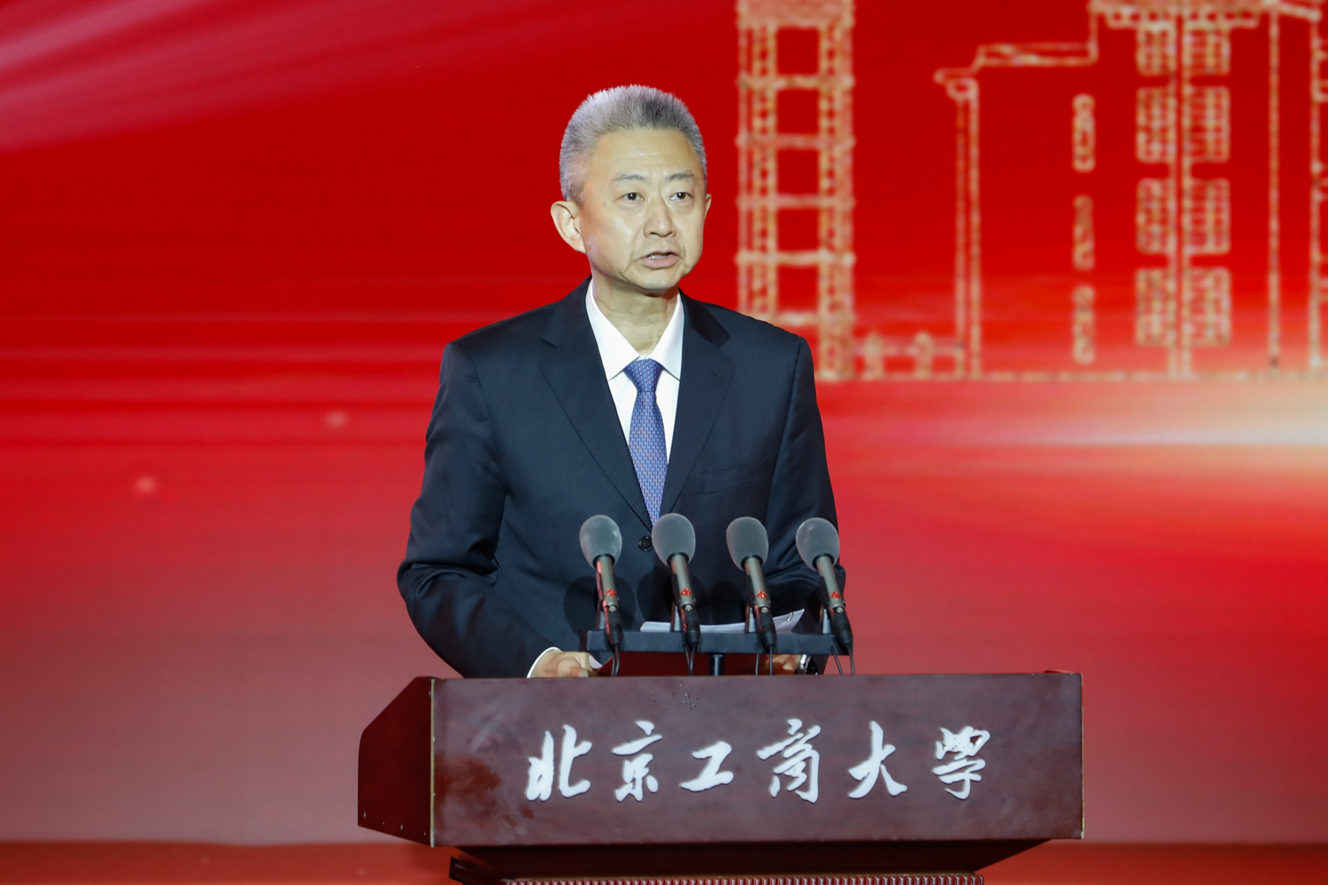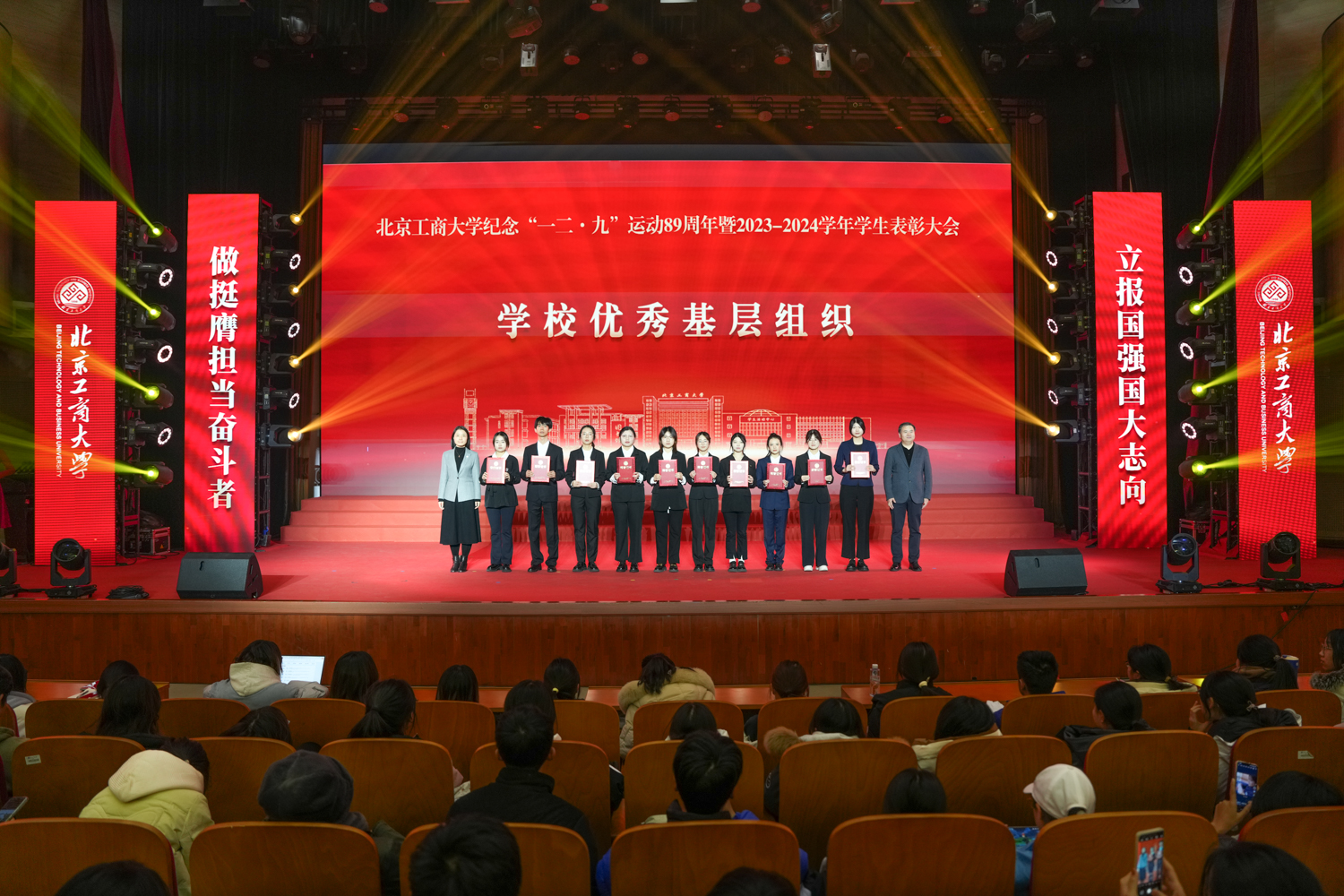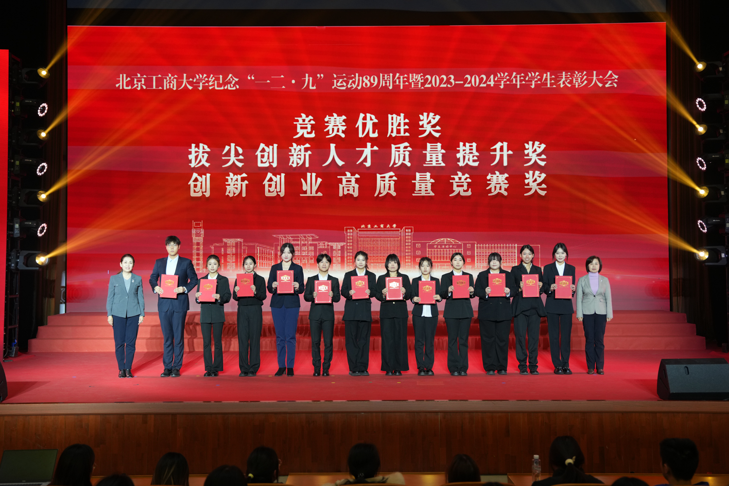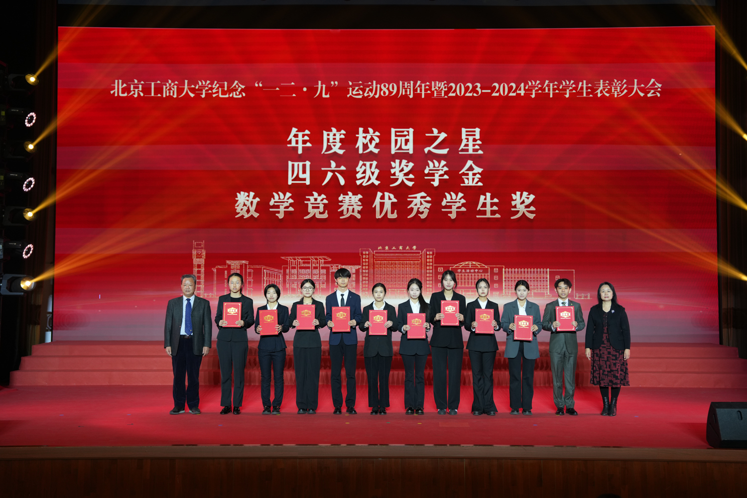 沈千帆代表学校党委和行政,向各位同学以及为学生成长成才付出辛勤汗水的广大教职工致以诚挚的问候,向获奖学生表示衷心的祝贺。他带领大家回顾了“一二•九”运动的历史,勉励同学们赓续北工商的红色基因。沈千帆表示,近年来,学校在全体师生的共同努力下,呈现出蓬勃发展的良好态势,锚定高水平研究型大学的办学定位,围绕国家重大战略和首都经济社会发展需求,为新质生产力不断提供更多更好的科技与人才支撑。在2023-2024学年中,北工商学子与学校发展同向同行,1966名学生荣获校级及以上荣誉称号,8783人次荣获各类奖学金,87个班集体荣获市级、校级表彰。他希望大家与这些同学并肩看齐,为美好的明天奋力拼搏:一是赓续爱国情,书写“坚定不移”的青春力量。要厚植爱党、爱国、爱社会主义的情怀,传递好“坚定不移”的信仰接力棒,扛起“民族复兴”的青春责任。二是砥砺强国志,书写“敢闯敢拼”的青春风采。要砥砺强国志向,勇于开拓、迎难而上,在矢志报国、服务首都等方面贡献青春力量。三是实践报国行,书写“善作善成”的青春作为。注重在社会大课堂中锤炼自我,将爱国之志变为报国之行。沈千帆强调,北工商学子要加倍珍惜美好的青春时光,以热爱祖国的赤诚之心,以民族复兴的美丽愿景,努力挥洒青春汗水、贡献青年力量、谱写闪亮耀眼的青春答卷!
