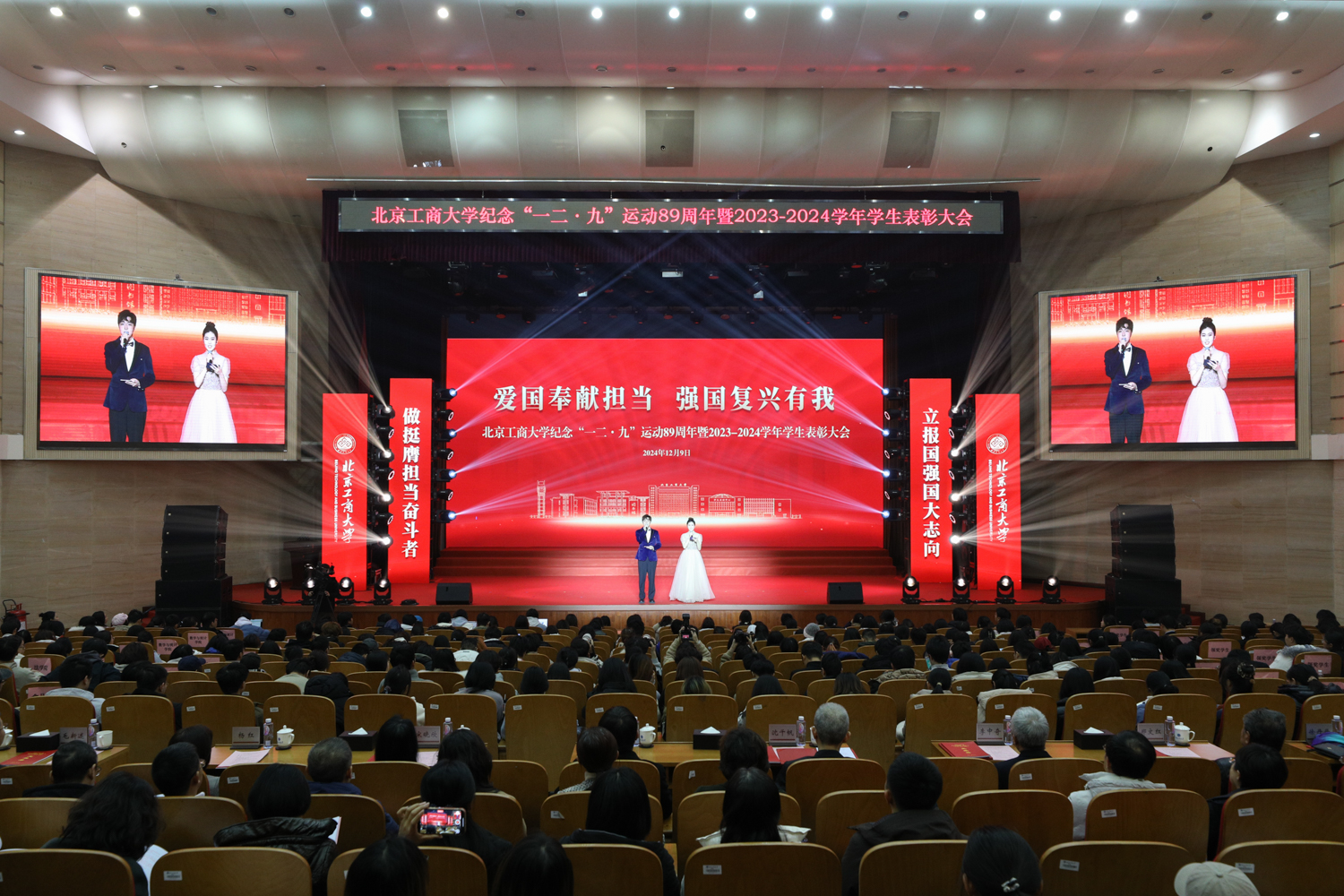 12月9日,色情片纪念“一二•九”运动89周年暨2023-2024学年学生表彰大会在良乡主校区举行。校领导沈千帆、郭建华、李中奇、宋晓欣、郑文红、杨红、徐丹丹、毛新述、寇红江、邓祥征、刘艳楠,校长助理杨天路出席大会,相关职能部门负责人、各学院党政领导、校友代表、教师代表、学生代表参加大会。