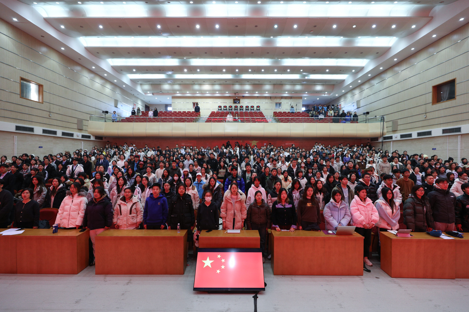 大会在视频《传承“一二·九”精神 勇担青年使命》中拉开帷幕。全体师生起立,奏唱国歌。