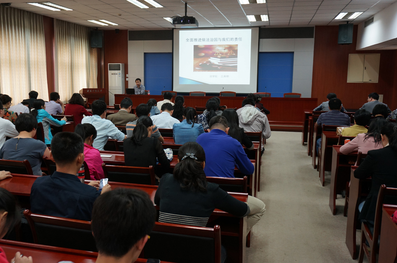 5月6日,学院举办党员理论学习专题讲座,讲座邀请到法学院/马克思主义学院党总支书记吕来明教授,全面解读了“全面推进依法治国与我们的责任”。全体院领导、教职工党员、研究生党员干部共百余人参加学习。讲座通过孙志刚案、吴英案、仇和“新政”等鲜活的案例,深入浅出的解读了“法治”的内涵、“依法治国”发展历程及十八届四中全会全面推进依法治国的背景。讲座还从生活中、大学治理中的法治问题两个层面,提出了全面推进依法治国进程中我们的责任。