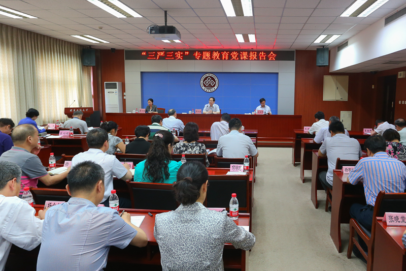 报告会上,党委副书记董竹娟就学校“三严三实”专题教育实施方案进行了说明。她指出,“三严三实”专题教育不分批次、不划阶段、不设环节,不是一次活动,要求融入领导干部经常性的学习教育之中。主要内容包括开展专题学习研讨、完成整改落实自查自纠、以践行“三严三实”为主题召开专题民主生活会和组织生活会、强化整改落实和立规执纪四方面。其中,学习要坚持个人自学和集体学习相结合,重点分3个专题开展学习和交流研讨,从5-10月,每两个月1个专题,每个专题集中学习和交流研讨时间不少于4个半天。在每个专题学习过程中至少组织召开1次专题交流研讨会。董竹娟还强调了两点工作要求,一是加强组织领导,明确职责,二是抓好宣传报道,推广经验。