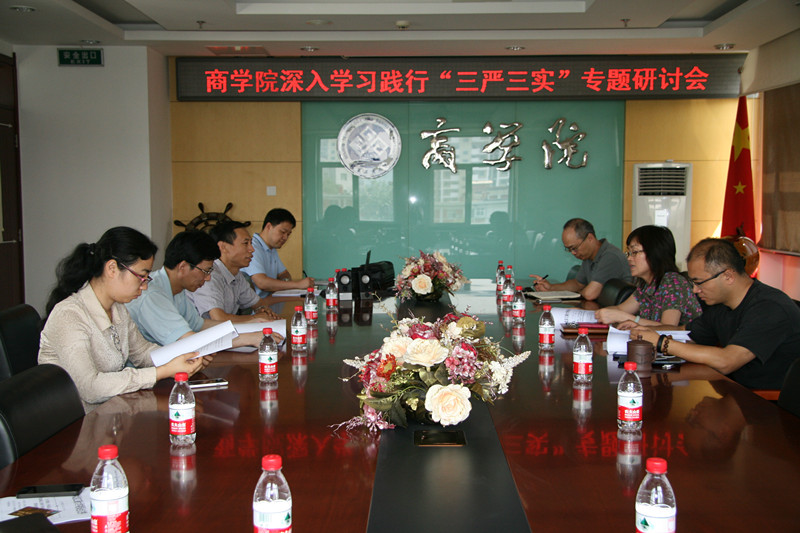 商学院党总支按照学校党委的工作部署,扎实推进“三严三实”专题教育,做到专题教育与日常工作有机融合、相互促进,两手抓、两不误。同时,将参加教育活动的人员范围扩大到教工党员和学生党员,以“三严三实”教育为契机,进一步加强党员教育管理,以党员教育促进基层组织建设。