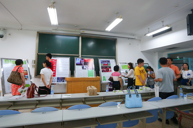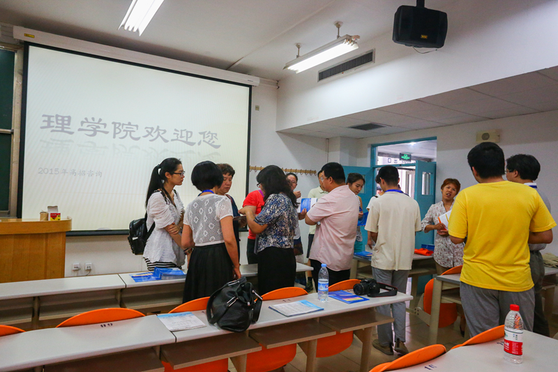 进入校门,高悬的校园开放日的横幅分外醒目,一排穿着红色工作服的志愿者分列在西区道路两侧,为前来咨询的家长指引。开放日活动现场分设在教三楼的两层,一层为材料与机械信息工程学院、理学院、计算机与信息技术学院、食品学院的学院咨询处,二层为艺术与传媒学院、法学院、外国语学院、嘉华学院、招生办的咨询处。每个学院咨询教室前整齐规律地陈列着学院精心制作的展板,介绍着学院近三年的录取情况、专业介绍、专业特色、培养目标、主干课程、就业前景等,各学院的老师们耐心细致地为前来咨询的家长和学生的解答疑惑。不少家长,或提笔记录或相互商量,在展板前反复观看,手中握着的学院宣传册透出他们对孩子报考的重视和认真。志愿者们也尽己所能帮助家长们就一些基本问题做出解答。