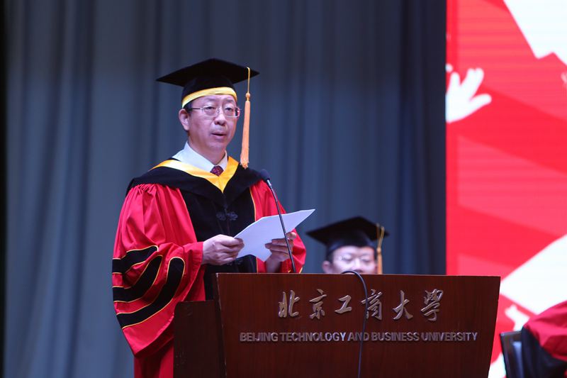 校长孙宝国院士向圆满完成学业的研究生表示热烈的祝贺,向辛勤培育学生的导师表示诚挚的感谢,向广大研究生的亲朋好友致以崇高的敬意。他与同学们分享了四年间学校从教学型大学向教学研究型大学转变的关键时期,在学科、科研、办学条件、研究生培养机制、国际化办学水平等方面取得的成就。他对同学们取得的丰硕成果表示赞扬,并提到,毕业生共取得科研成果795项,SCI、EI收录论文63篇,CSSCI收录论文25篇,核心期刊269篇,专利47项,著作24部。孙校长对毕业生提出几点建议,希望同学们:脚踏实地,不急不躁,走好迈出校门的第一步;胸怀大局,志存高远,成为有益于社会和人民的人;全面发展,建功立业,为母校争光。最后,他祝愿毕业生在新的征途上一帆风顺,有一番成功的事业,有一个美满的家庭,有自己无悔的人生!他希望大家常回家看看,并与同学们相约百年校庆再相会!