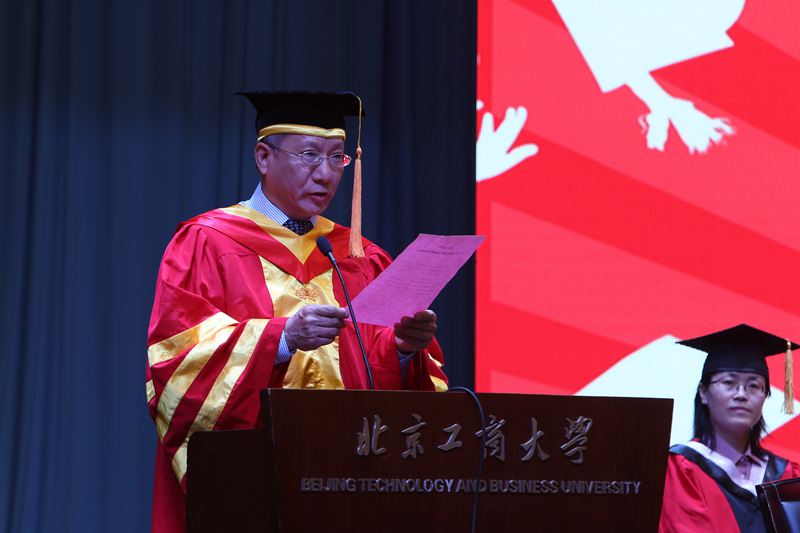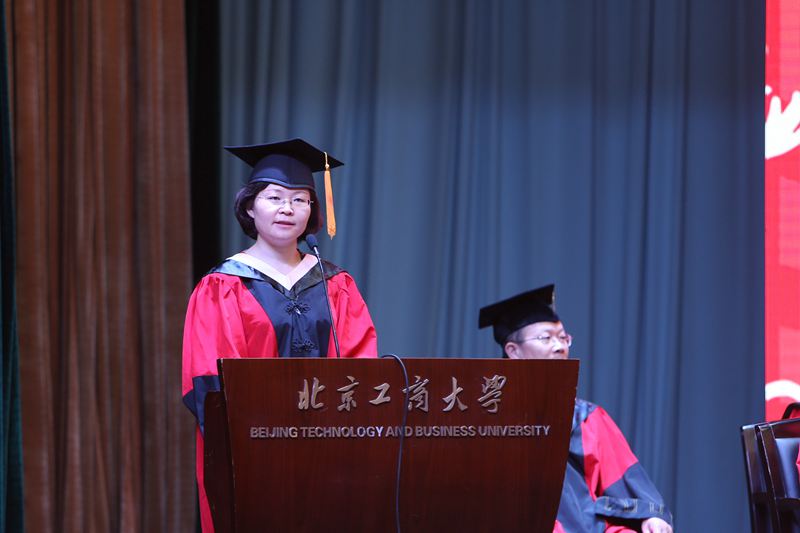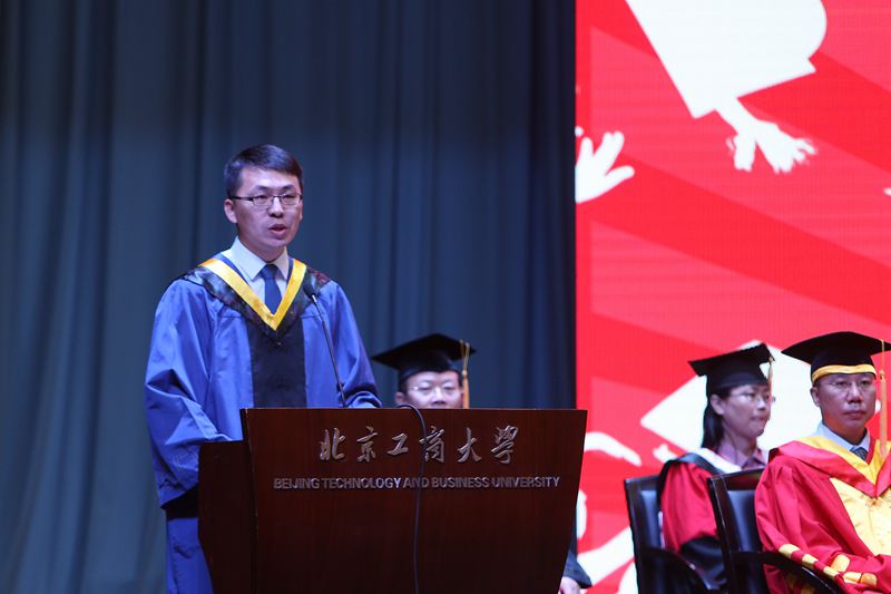计算机与信息工程学院的白玉廷代表2015届研究生毕业生发言,分享了几年来的工商生活,表达了毕业生对母校的感激与不舍,展现了工商学子翱翔长空、搏击云霄的勇气与信念。