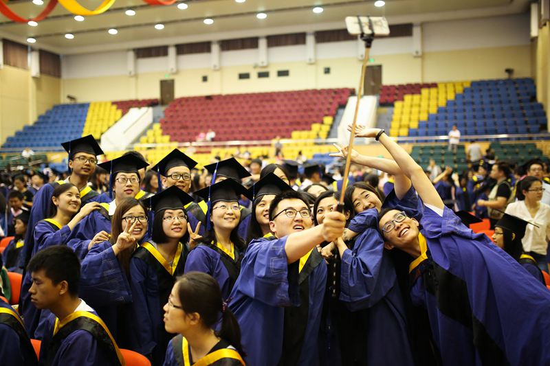 在青春洋溢的音乐声中全体毕业生一起将硕士学位帽抛向空中,寓意放飞理想,远航高歌。2015届研究生毕业典礼暨学位授予仪式也在高潮中落下帷幕。斩不断的万缕情丝,忘不掉的青春回忆,聚是一团火,散是满天星。祝愿2015届全体毕业生在新的起点展翅翱翔,再创辉煌。