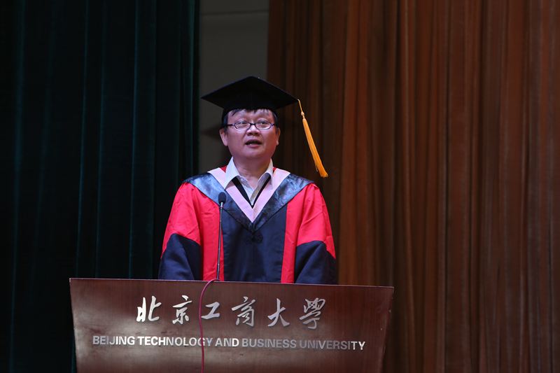 孙宝国校长向圆满完成学业的毕业生们表示热烈的祝贺,向参加毕业典礼的家长朋友们致以诚挚的问候,对同学们赠送学校的珍贵礼物表示感谢。孙宝国校长与同学们一同分享了学校这四年来在教学、科研、人才培养、办学条件和校园文化等方面取得的可喜成绩,称赞了毕业生们在大学四年中在学习、科研、文艺、体育及综合素质等方面取得的丰硕成果。他特别赞扬了各学院2015届本科毕业生的杰出代表,并表示母校为毕业生成长成才感到骄傲与自豪。孙校长对即将离开母校,开始人生新征程的毕业生们提出建议,他希望毕业生们:脚踏实地,不虚假不浮躁,存大志、做小事,学会诚实做人、踏实做事;眼界高远,要胸怀世界、胸怀祖国、胸怀大局,做一个有益于国家的人、有益于社会的人、有益于母校的人、有益于朋友的人;全面发展,学会做人,学会做事,学会生活。最后,孙校长希望学子们常回来看看,与母校分享成功的喜悦和人生的收获,并邀请大家带着健康、幸福和感恩的心回到母校参加百年校庆。