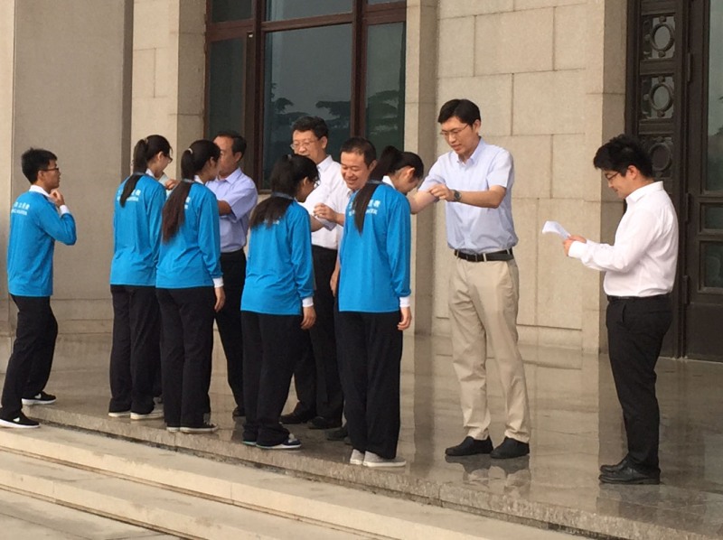 7月22日清晨六点半,我校45名志愿者抵达毛主席纪念堂东门,整齐列队参加2015年毛主席纪念堂志愿服务项目上岗仪式,我校承担第八批次的志愿服务。毛主席纪念堂志愿服务项目为团中央重点志愿服务项目和团市委品牌项目。团市委机关党委书记、市志愿服务指导中心主任郭新保,毛主席纪念堂管理局接待处处长马恒祥,市志愿服务指导中心副主任王嬴,团市委大学部副部长佟立成,我校团委书记吕良出席了此次上岗仪式。