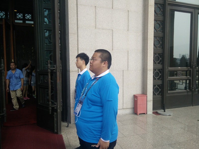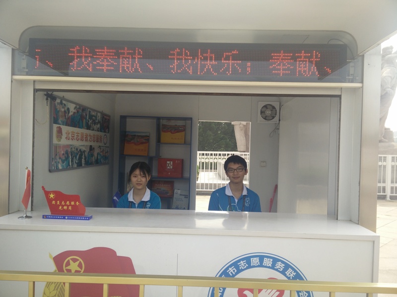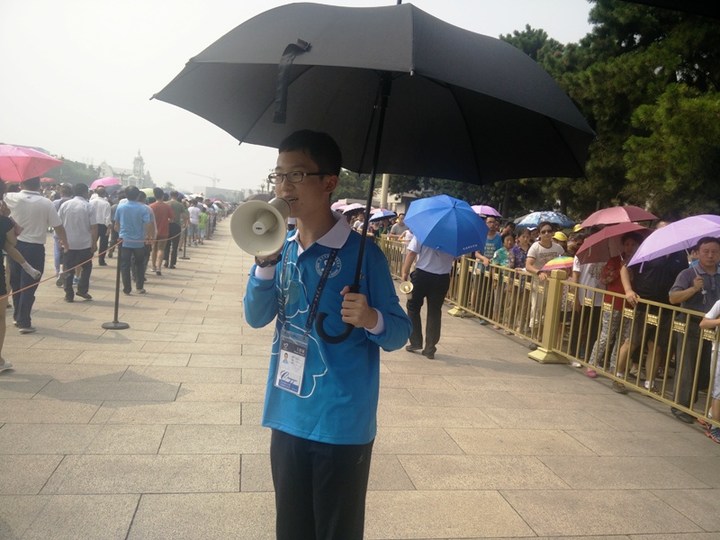 第一天上岗,虽然天气有些燥热,志愿者仍坚持以饱满的精神状态坚守岗位,圆满完成了本岗位的工作。前来瞻仰毛主席纪念堂的群众有数万人之多,外围引导岗的11位同学配合纪念堂工作人员引导瞻仰群众有序排队、等候、瞻仰,维护瞻仰队伍的良好秩序,宣传瞻仰参观注意事项,耐心解答瞻仰群众相关问题,经过志愿者的努力,排队队伍更加有序前进。扶老助残岗的志愿者们协助老年人、行动不便人士、残障人士进出纪念堂,志愿者们虽然很辛苦,但也感觉到了助人为乐的幸福。献花台引导岗的志愿者们引导瞻仰群众有序献花,维护秩序,耐心提醒大家“不要拍照,不要大声说话,给主席最大的尊重”,及时整理献花台,营造了瞻仰现场庄重、肃穆的氛围。每一个岗位上的同学都十分用心的对待每一位瞻仰群众。