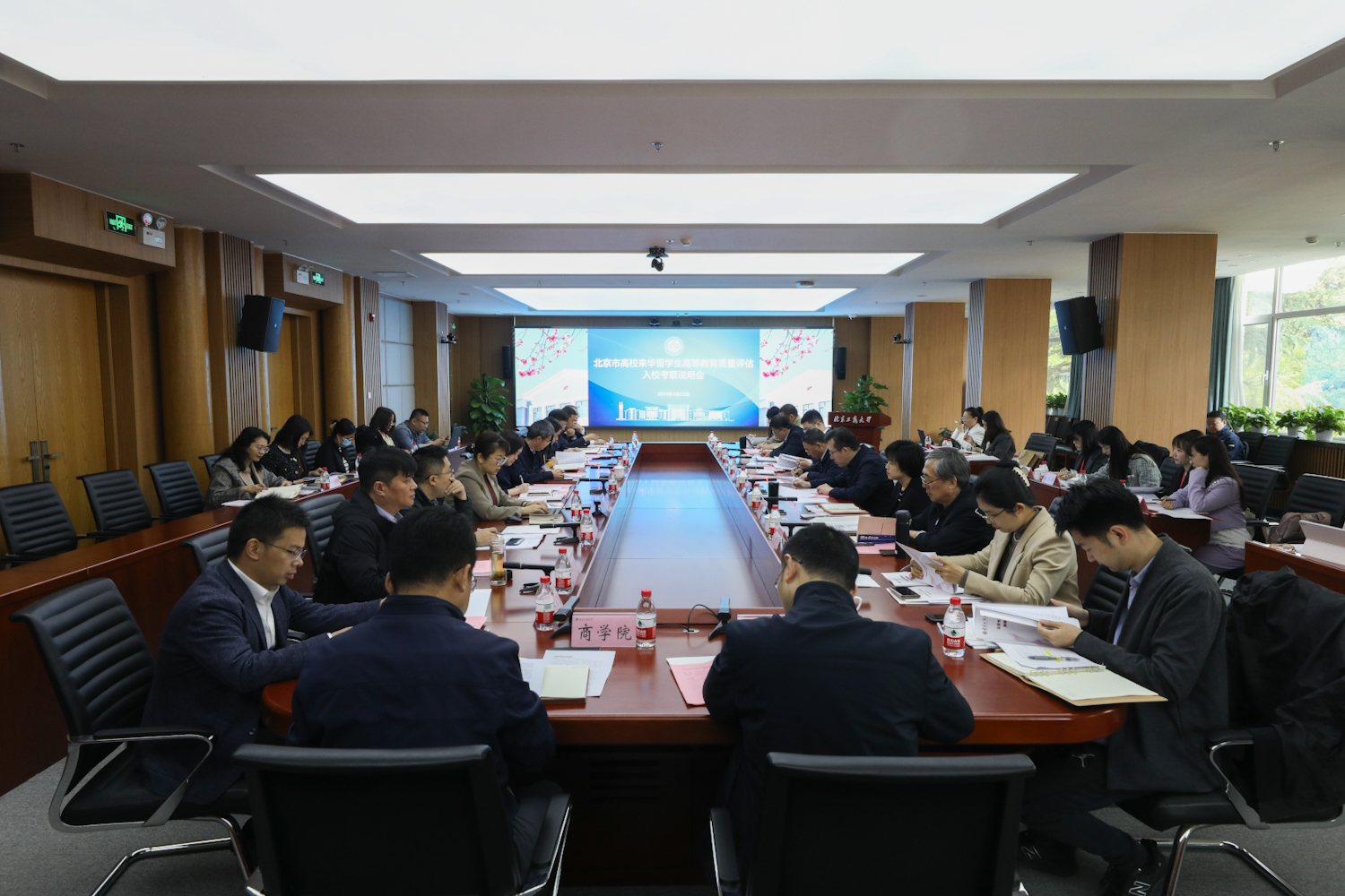 学校党政办公室、党委宣传部、教务处、研究生院、公共事务处、学生处、保卫处、国有资产管理处、网络与信息化管理中心、图书馆、经济学院、商学院、食品与健康学院、轻工科学与工程学院、计算机与人工智能学院和语言与传播学院的负责人参加此次入校评估工作。