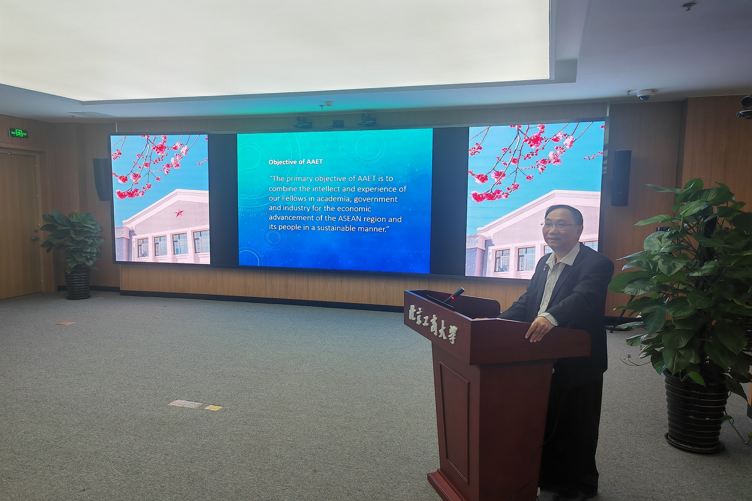 蔡贤德感谢学校热情接待,他详细介绍了东盟工程与技术科学院成立背景、工作内容和相关国际交流情况。他表示,东盟工程与技术科学院自成立以来,致力于汇集东南亚地区工程技术方面的相关科技资源和智力资源,促进双边及多边的交流合作,推进东盟国家科学与技术发展。此外,蔡贤德也介绍了马来西亚拉曼大学的学科设置和学校发展情况,希望未来两校能够加强对接,开展师生交流、推进科研合作。
