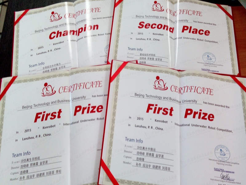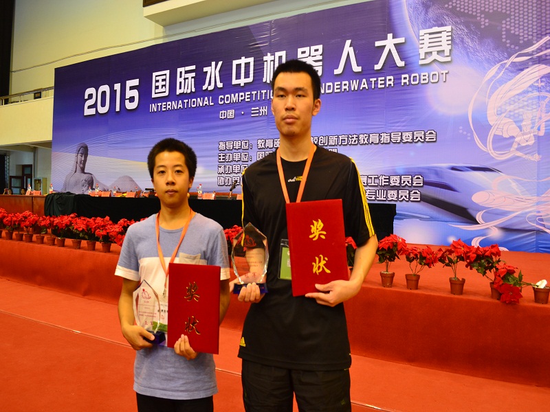 近日,2015国际水中机器人大赛在兰州交通大学闭幕。经过3天的激烈角逐,我校计信学子获得水中机器人全局视觉水中角力比赛冠军、基础组技术挑战赛亚军,另外,还获得水中机器人2D仿真生存挑战赛、2D仿真水中搬运赛一等奖,以及全局视觉水中救援、全局视觉水球2V2、全局视觉抢球博弈、全局视觉与2D仿真花样游泳二等奖,连晓峰老师获得优秀指导教师奖。