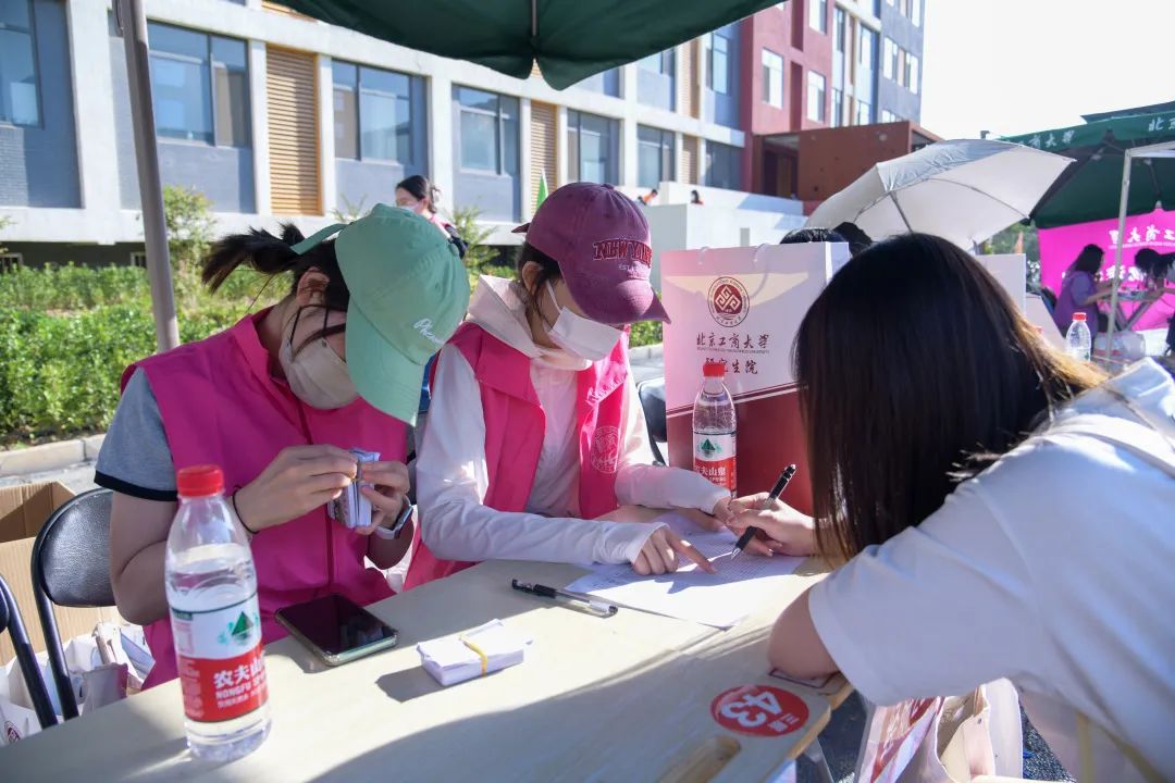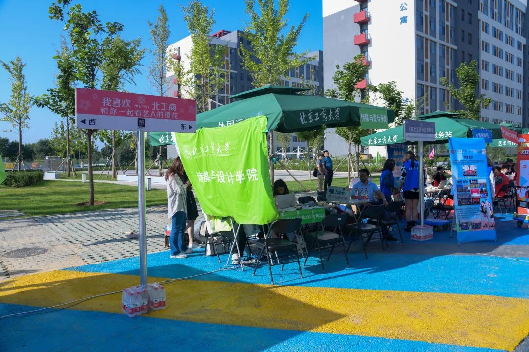 传媒与设计学院发挥专业优势,设计了各色迎新活动的互动道具,为新生准备了趣味手拿牌,以及印有“我喜欢北工商传设”的特色路牌,供新生们合影留念,记录下初入校园的青涩面庞。